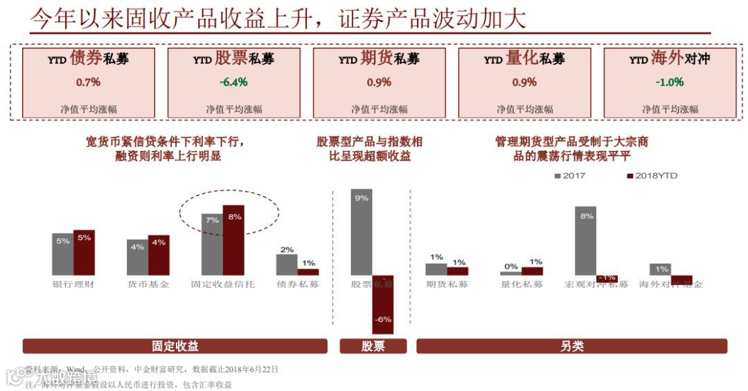 反过来讲,2018年的市场因为非常波动,投资者如果做了分散化配置,会是非常好的一年。货币基金、银行理财以及固定收益信托,今年的收益都比去年有显著的提升。