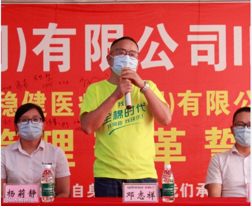 2020年09月03日下午15:00,稳健医疗(黄冈)有限公司-南区IE建置誓师大会如期召开。标杆车间水刺三车间、成品二车间,各车间主任/副主任、班长,生产部、主机部、创新部、辅机部、品管部、工程技术部、供应链,研发部、人资部、财务部等主要人员、深圳市交大思源管理咨询有限公司项目组顾问老师共计95人参加启动誓师大会。