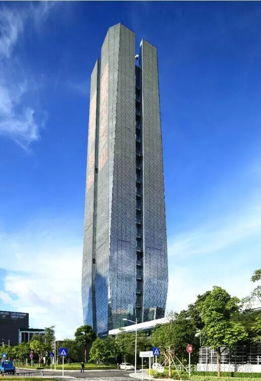 项目结构设计结合建筑风格和特点,大胆创新,在框架-核心筒结构体系中,外框柱设计为钢管混凝土柱斜柱随建筑体型先外倾后内倾,在吸收国内外科研成果的基础上,使梁柱节点设计简单安全,成功的解决了本工程中遇到的一系列较高难度的技术问题。