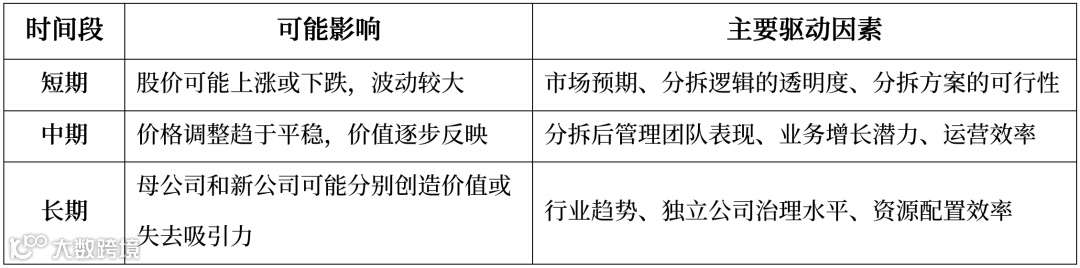 4) 挑战:可能会增加管理层的复杂性,因为分拆后的公司需要独立运营,可能面临更多的战略决策和资源配置问题。