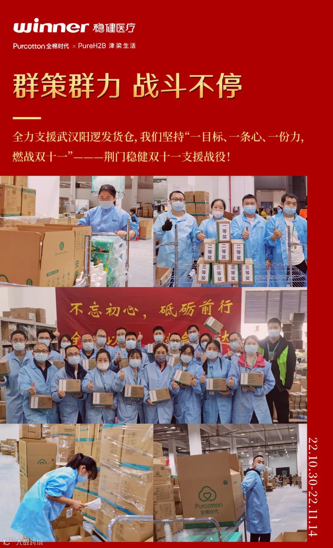 全力支援武汉阳逻发货仓,我们坚持“一目标、一条心、一份力,燃战双十一” !回顾总结起来就一个字:燃。不管是氛围,还是每个人的战斗状态,我们都能看到稳健人心中的热血在燃烧!有付出,有收获,有感动,拼搏的稳健精神常在!