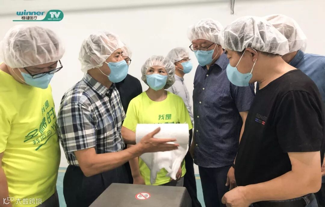 7月03日上午8:30,稳健医疗集团卓越生产运营检查组各位领导一行先后参观走访了一车间、三车间、灭菌车间、一期仓库、四车间、五车间、二车间,仔细查看了前纺、脱漂、水刺、压缩面巾、纱布夹棉、检查垫、灭菌、仓库、酒精消毒片、湿巾、吸水垫、棉片、棉签、吸塑、棉条等生产线和生产区域。每到一处,董事长和各位领导、专家都看得非常仔细,并提问交流、互相学习。在一车间,董事长看的时间最长,提的问题最多,要求针对棉卷收尾部分不好打开的问题研究改善。对一车间在设备、环境改造升级、工艺优化方面所取得的成绩表示高度认可;并同意要增加投入,对一车间的落后厂房、设备、设施做全面规划和升级。在三车间,董事长对三车间的生产环境改善表示满意,对自动化生产线高度关注,来回看了两遍,并多次询问该生产线的效率情况;指出套膜不精准和纱布夹棉产品的优化,解决纱线头的困扰要迅速进行改善。在灭菌车间和一期仓库,董事长实地查看后,对灭菌车间和仓库的整体规划、安全设施、物流布局、仓库管理给予了高度评价,表示嘉鱼稳健仓库管理走在了各子公司的前列,要求仓库团队要始终保持这种状态。在四车间纯水湿巾生产区,集团副总裁尹总提出了纯水清洁棉锯齿边伤手的问题,要求嘉鱼团队要迅速进行改善。在日用湿巾生产区,董事长和各位领导分头查看,提问交流;嘉鱼稳健高管团队分别向各位领导汇报、讲解。董事长在对80片湿巾生产线来回查看后指出,湿巾产品需要在生产稳定、质量可靠的基础上不断研究,从配方、功能性、含液量、抽取方式等方面满足市场和用户需求。在吸水垫生产线、棉片生产线,各位领导均表示满意。在棉签生产区域,董事长及各位领导分别查看了竹棒棉签、塑棒棉签、纸棒棉签的生产,对嘉鱼稳健棉签自动化成果表示高度赞赏。大家一起回顾了棉签产品的生产历史,从最初的单机台手工作业,到现在的生产线连续作业加自动化包装,winner 品牌的棉签在市场上的知名度越来越高,口碑越来越好!董事长还检查了一次性内裤吸塑包装、新棉条生产线,要求嘉鱼管理团队决不能安于现状,要不断提高自动化水平、不断优化工艺、不断推动创新改善。