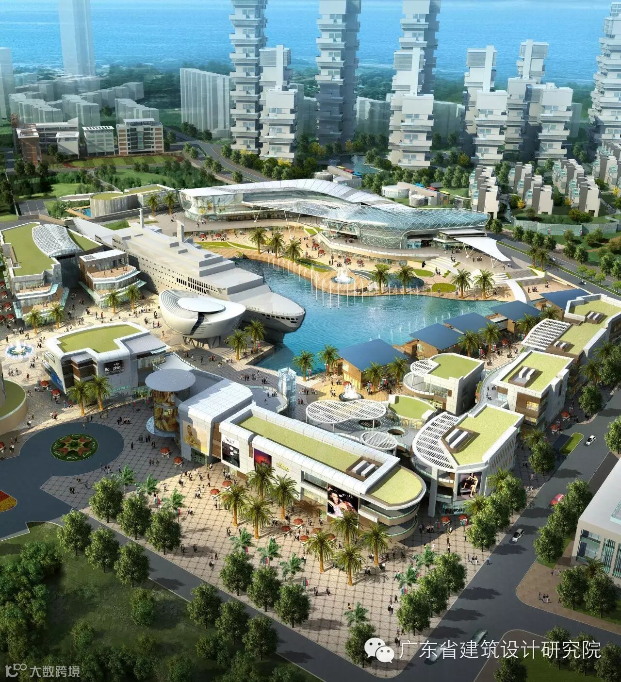 退台式商业设计手法,结合景观和商业,面向中央湖面,为商户保留了更多外摆空间,更保证每层平台均可观赏水秀奇观,充分让人们感受景观所带来的愉悦休闲氛围,在层叠的波浪和蜿蜒的小道,让人们置身探索之旅。