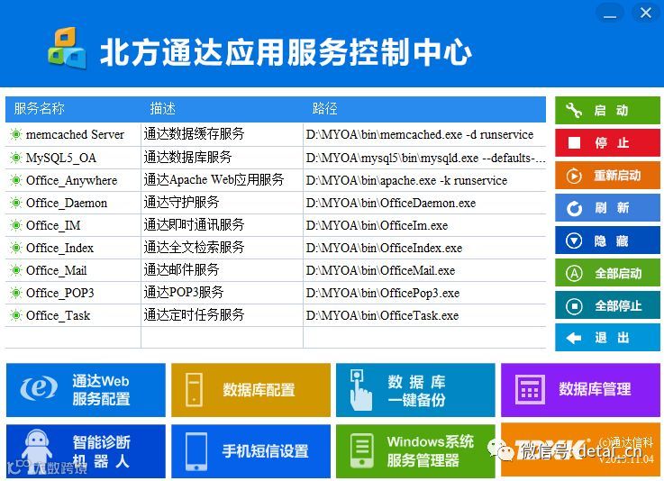1)方法一:在北方通达应用服务控制中心点击数据库一键备份工具进行数据库热备份。如图所示:
