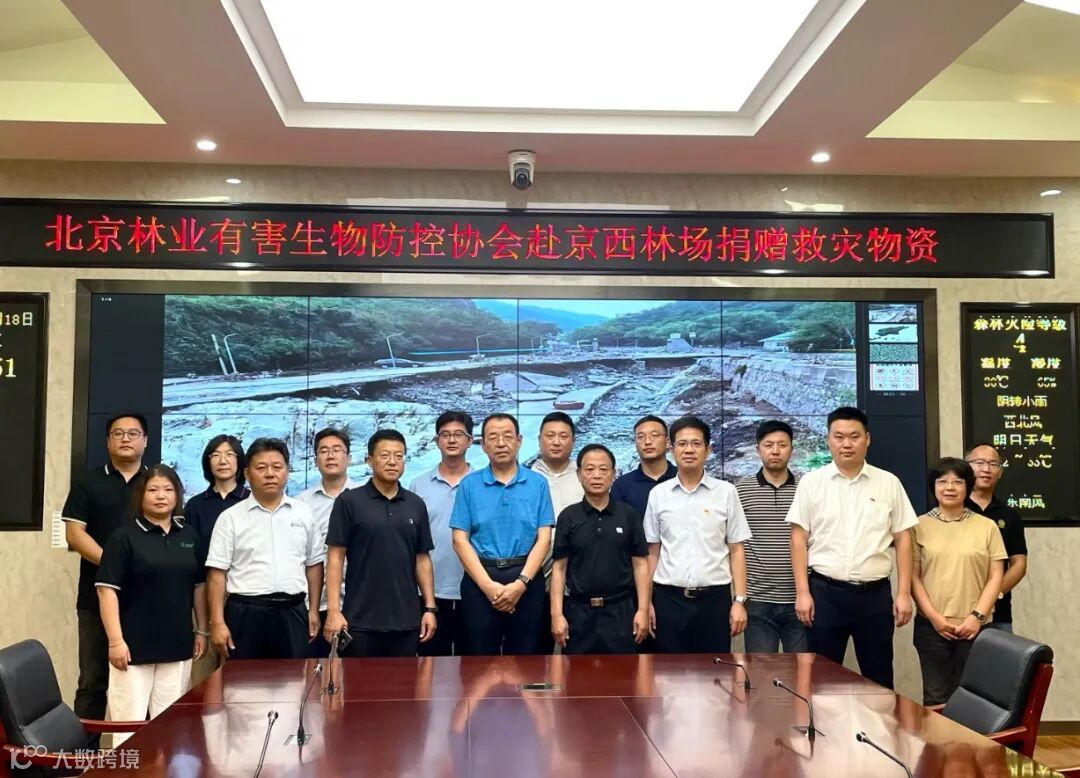 “一方有难、八方支援”北京市园林绿化局防治检疫处朱绍文处长,北京林业有害生物防控协会蔡宝军会长、张崇岭副秘书长及成员单位企业于2023年8月18日上午共同到门头沟园林绿化局和京西林场捐赠资金和救灾物资,特别是捐赠了一批当前灾后重建阶段最迫切需要的消杀、病虫害防治药品和设备工具等。