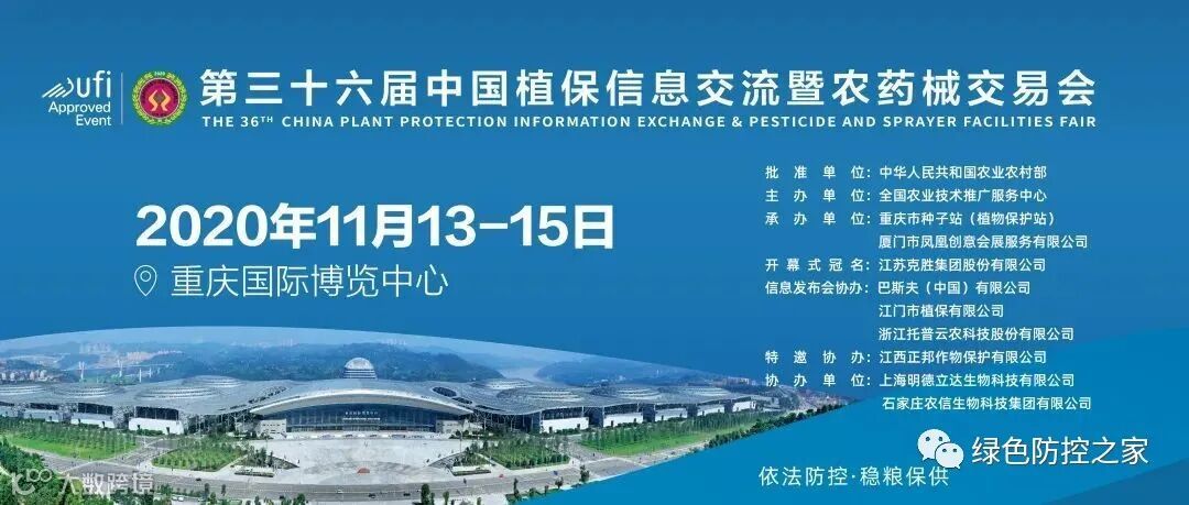 经农业农村部批准,由全国农业技术推广服务中心主办,重庆市种子站(植物保护站)、厦门市凤凰创意会展服务有限公司承办的第三十六届中国植保“双交会”将于2020年11月13~15日在重庆国际博览中心举办。