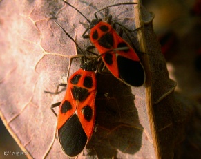 成虫体长8~11毫米,长椭圆形;前胸背板赤黄色或红色,上有近方形的黑斑2个;小盾片黑色;鞘翅赤黄色或红色,每个鞘翅中部各有不规则的黑斑1个;膜翅黑色。成虫有趋光性。