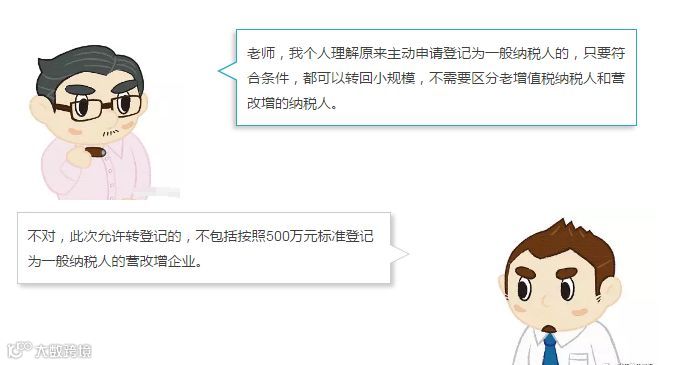 从另一个角度来理解,此次允许转登记的,不包括按照500万元的标准登记为一般纳税人的营改增企业。