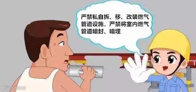 燃气管道被包裹起来或埋入墙内;将燃气设施改装在卧室或卫生间内;私自改动燃气管道走向、燃气表位置;燃气热水器未有效安装烟道或烟道管接入公共烟道等,均会带来安全隐患。