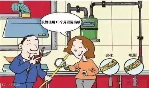 用气后如果不关闭阀门,管道内的压力会作用在软管接口上,导致软管脱落,造成燃气泄漏。此外,胶管老化是导致燃气泄漏又一重要原因。按照规定,天然气胶管一般使用18个月就要更换,因此应定期检查胶管的老化情况,及时更换,长度不能超过两米。在使用时,胶管不要离灶火太近,以免其受热变形;要用管卡固定胶管连接处,不用时一定要关闭灶前阀。