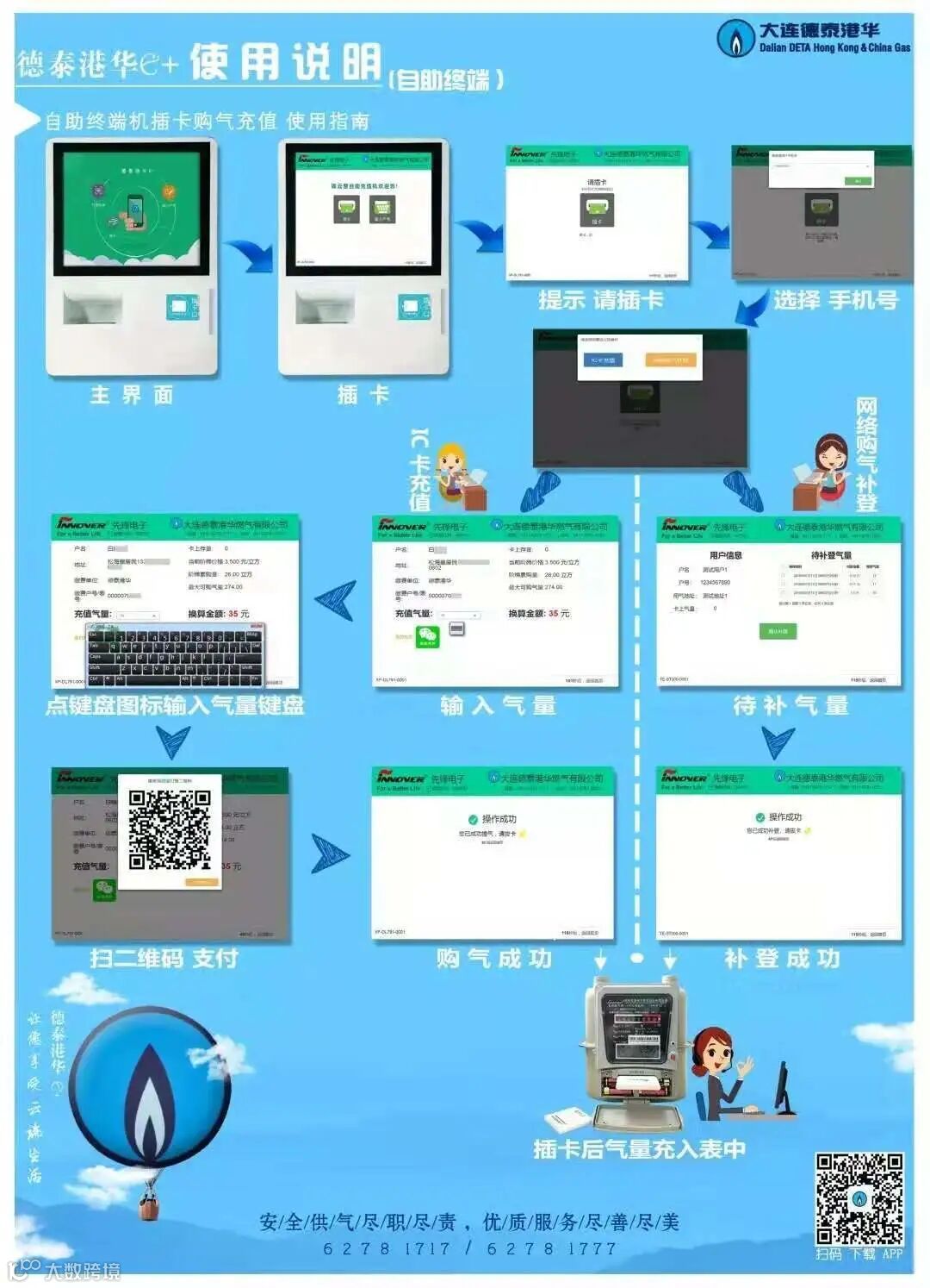 目前在燃气收费处收费大厅和24小时自助缴费室、东居里自助缴费室以及中国银行各营业网点,和今年新安装16个社区各敷设一台自助缴费机,可进行IC卡、CPU卡以及IOT物联表缴费。自助缴费操作演示如下: