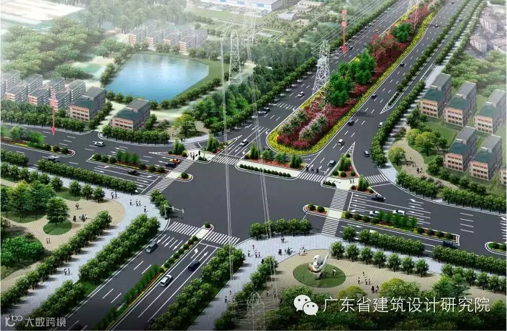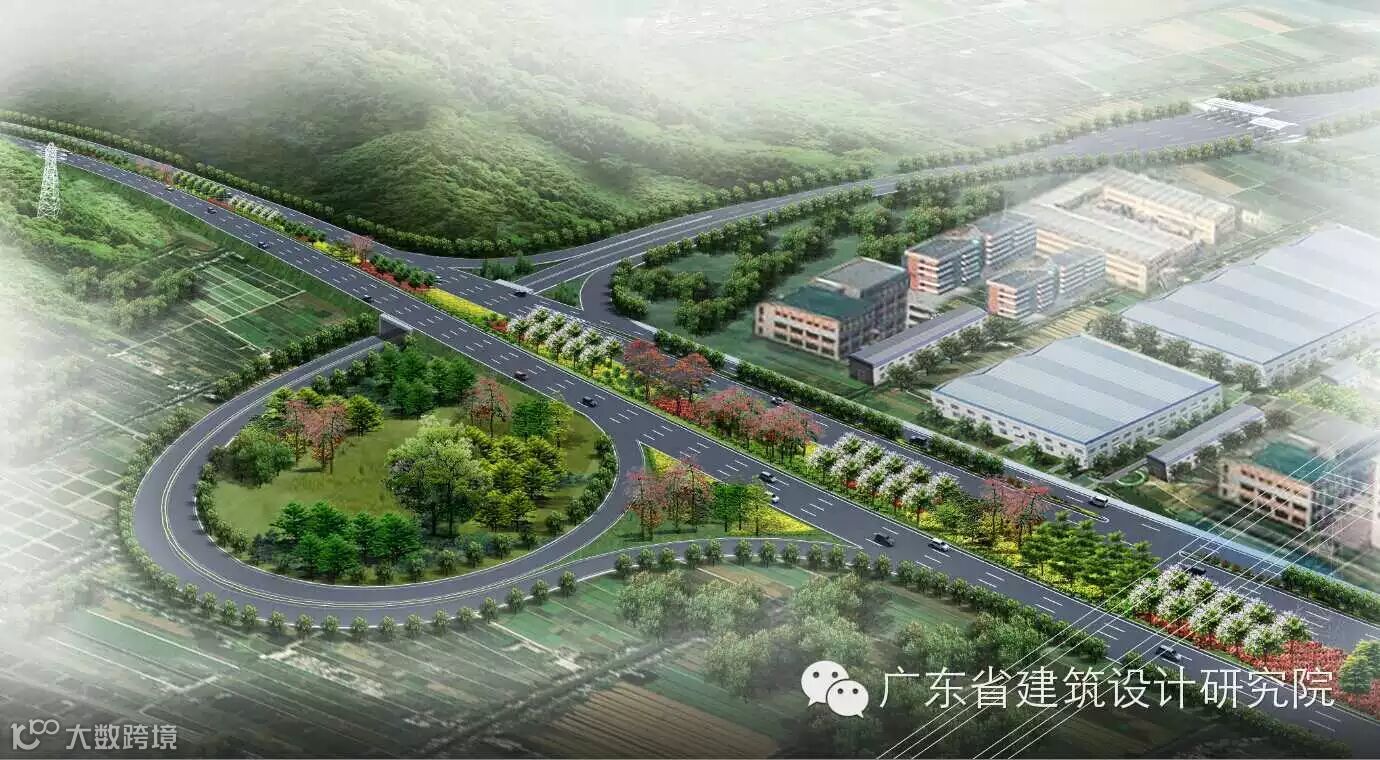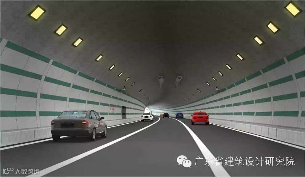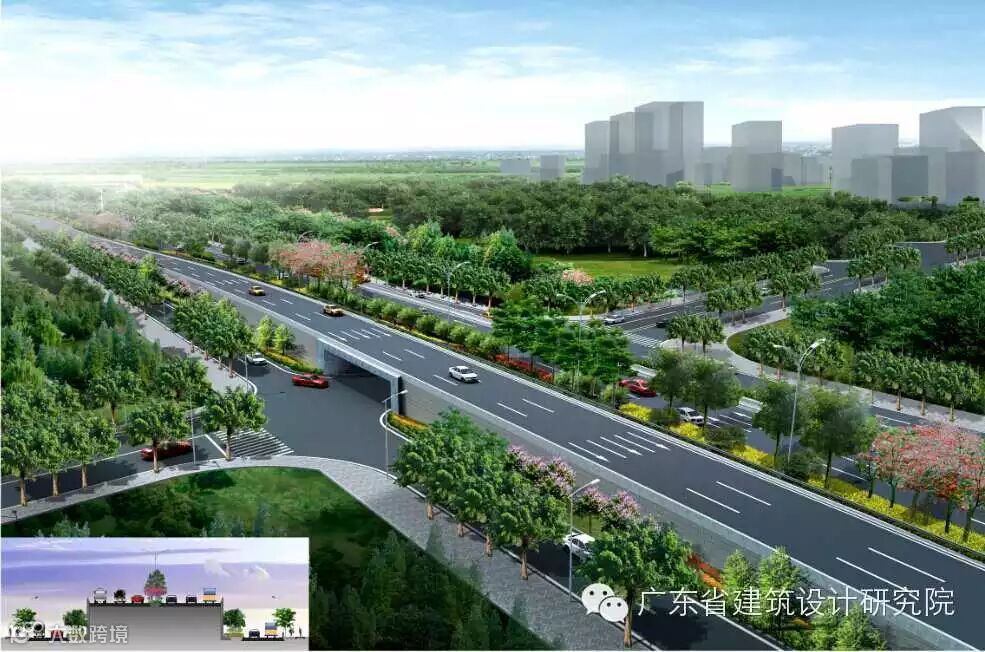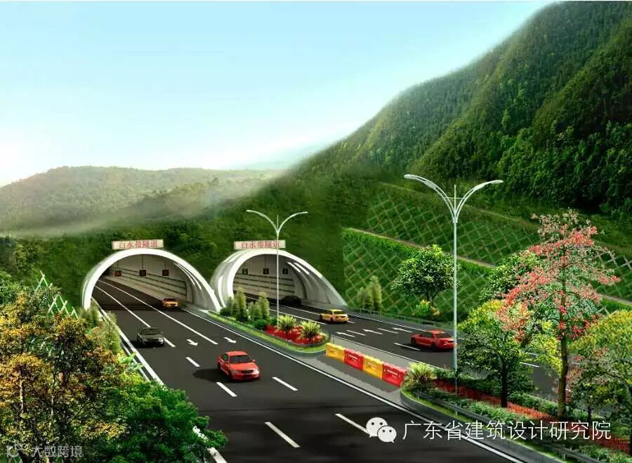 南山路设置单喇叭式互通式立交与广中江高速南山收费站联接,受规划及用地限制,立交与隧道距离较近,行车条件复杂,设计难度大、要求高。