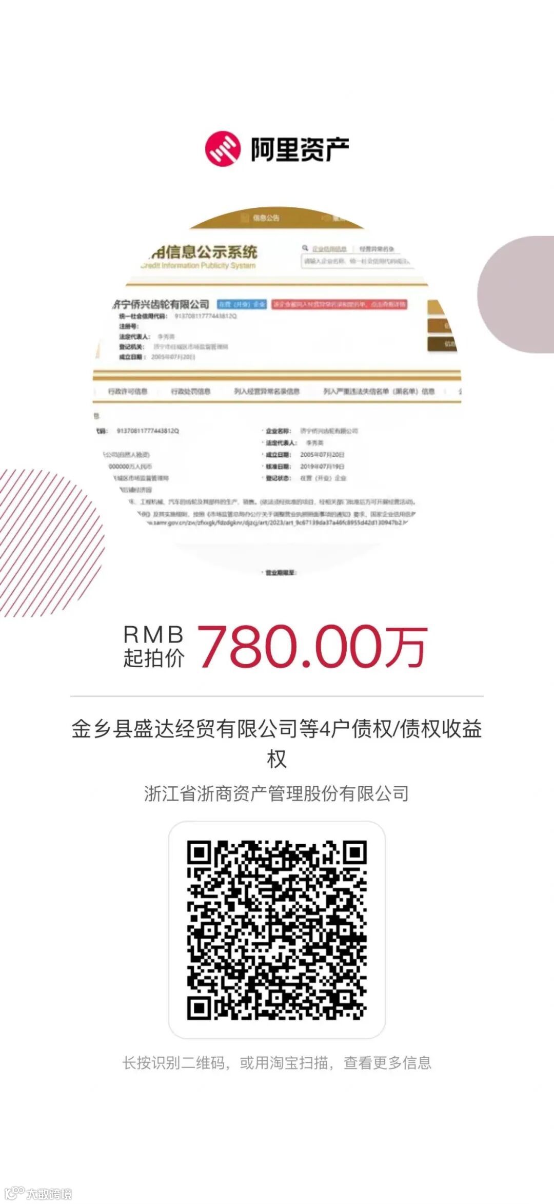 浙江省浙商资产管理股份有限公司将于【2025】年【7】月【17】日10时至【2025】年【7】月【18】日10时止(延时的除外)在淘宝网资产竞价网络平台上(http://zc.paimai.taobao.com)进行公开竞价活动,现公告如下: