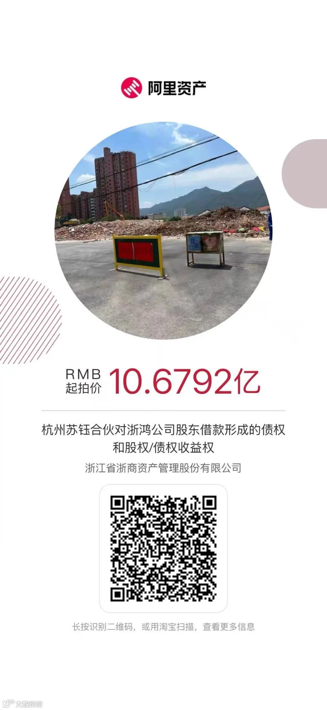 浙江浙蓝金丰企业管理有限公司委托浙江省浙商资产管理股份有限公司将于【2025】年【4】月【8】日10时至【2025】年【4】月【9】日10时止(延时的除外)在浙江省浙商资产管理股份有限公司淘宝网资产竞价网络平台上(http://zc.paimai.taobao.com)进行公开竞价活动,可识别下图查看详情。