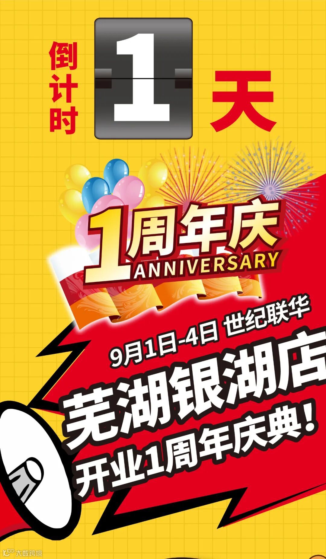 倒计时1天!芜湖银湖店周年庆典!全场低至3.5折!超嗨爆款!超豪满送!超多满减!狂嗨4天!
