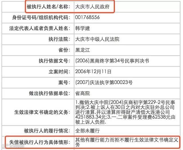 挨个查看了480多个失信的政府后,小编意外的看到了大庆市人民政府赫然在列。