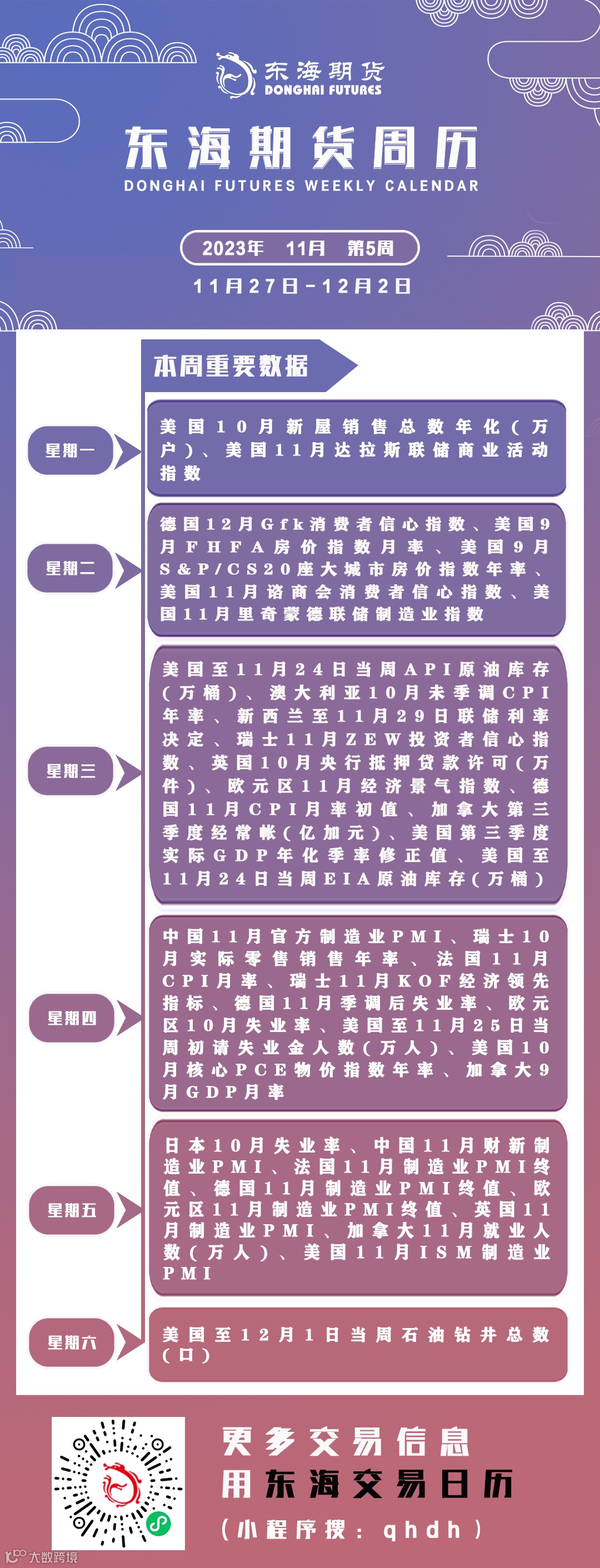 东海期市周历丨本周你需要知道的重要数据(11月27日-12月2日)