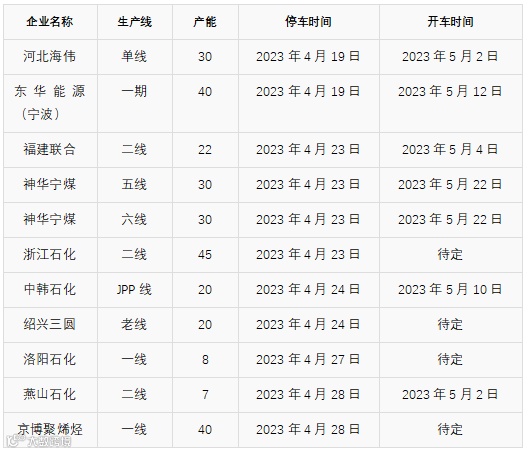 装置方面:陕西兖矿榆林能化年产140万吨甲醇装置目前陆续重启恢复正常,据了解该装置于4月10日附近停车检修。内蒙古伊东九鼎年产10万吨甲醇装置于4月17日附近停车检修,预计5月6日左右重启恢复。江油万利年产15万吨天然气制甲醇项目4月8日因装置问题停车,预计本周末附近重启。乌兰察布旭峰合源化工15万吨/年甲醇装置目前运行正常,厂家计划近日停车检修。