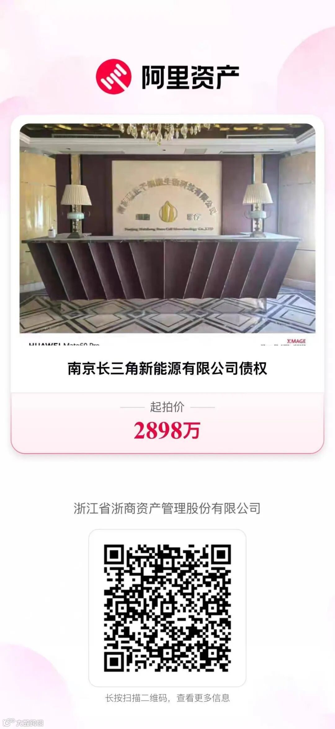 浙江省浙商资产管理股份有限公司于【2025】年【12】月【29】日10时至【2025】年【12】月【30】日10时止(延时的除外)在淘宝网资产竞价网络平台上(http://zc.paimai.taobao.com)进行公开竞价活动,可识别下图查看详情。