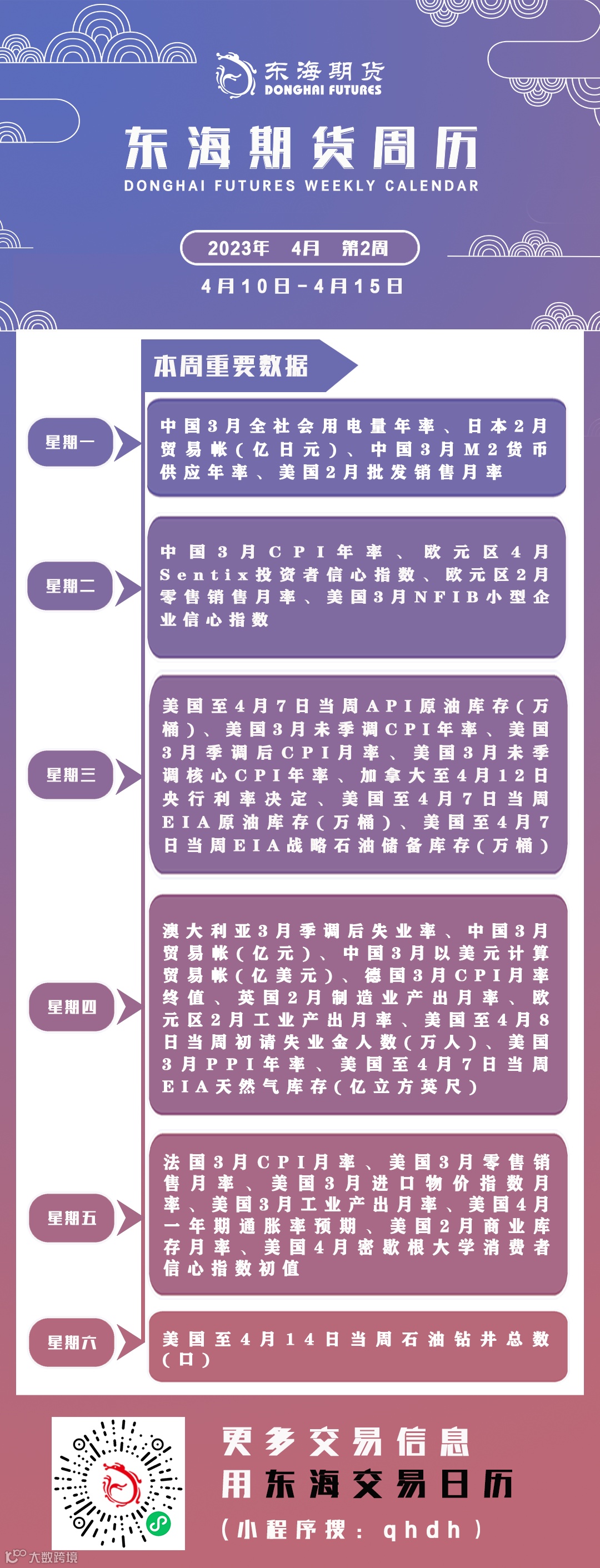 东海期市周历丨本周你需要知道的重要数据(4月10日-4月15日)