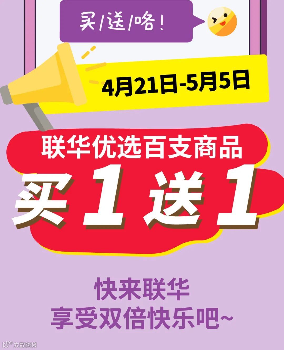 五一放大价丨联华优选百支商品买1送1,双倍的快乐来喽~