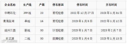 装置方面 陕西黑猫年产10万吨甲醇装置于上周末期间故障临停检修,预计明后日恢复重启.山东华鲁恒升一套100万吨/年甲醇装置目前略降负运行,另一套50万吨装置维持停车.江油万利年产15万吨天然气制甲醇项目于12月初因限气停车,预计春节后开;山西焦化年产26万吨焦炉气制甲醇装置1月10日因设备故障临时停车检修,计划于1月14日重启