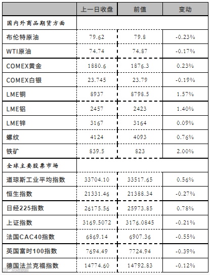 1.核心逻辑:由于美联储官员前一天表示可能需要加息到5%上方,因此周二市场盘初走势不佳,但在美联储主席鲍威尔没有就加息前景给出任何进一步的线索之后,跌幅有所缩小。而金融市场风险偏好普遍升温,市场参与者预计即将公布的CPI数据进一步放缓,都使得商品资产情绪转向乐观。同时随着供应问题的持续以及中国需求的回归,价格触底的信心也越来越强。