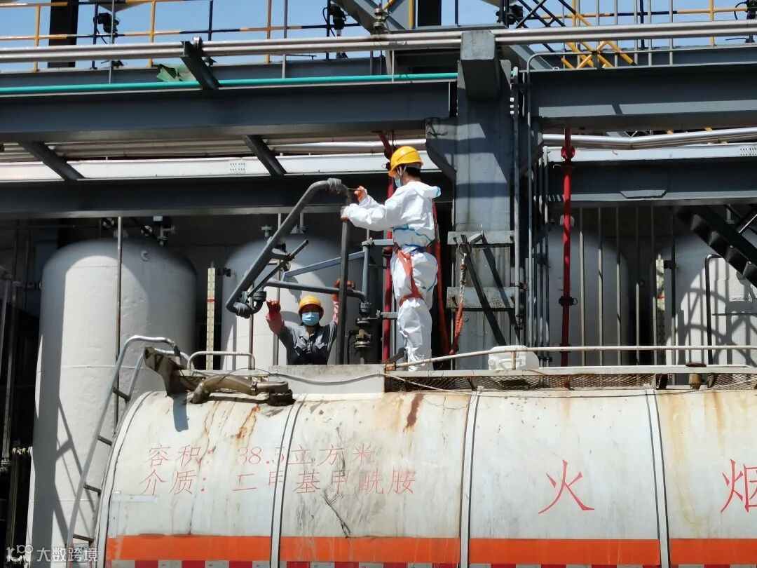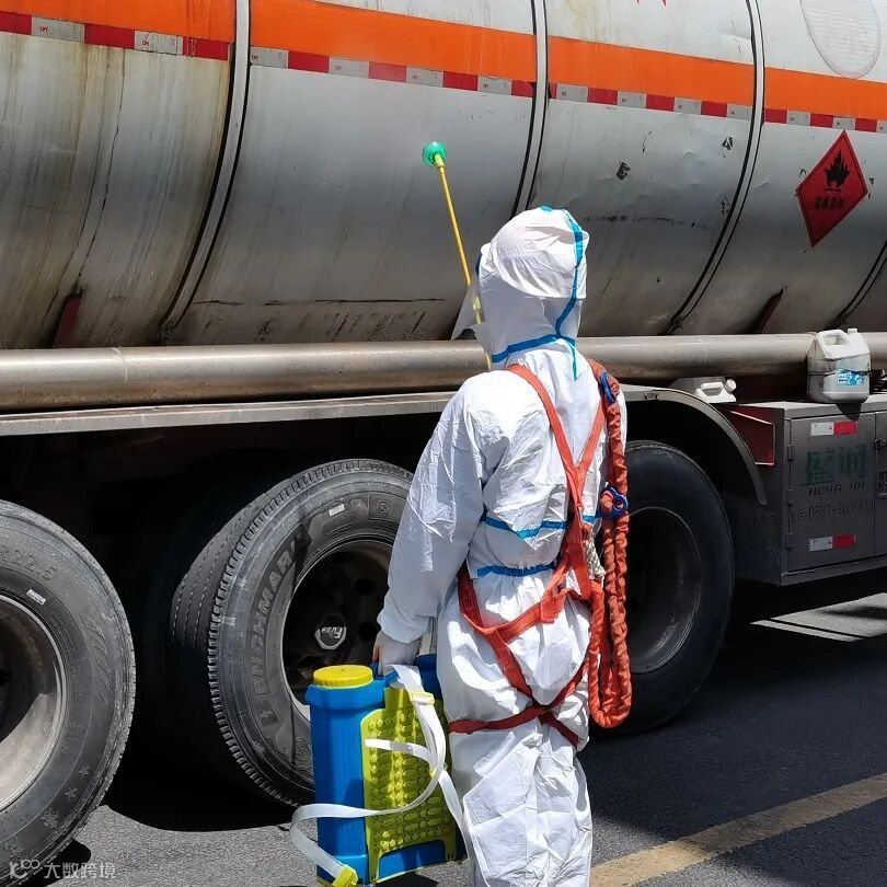 驻厂当晚,公司值班通知17点左右有一槽车氢氧化钾到厂,防疫专班小组成员做好防护,对槽车进行了消杀及引导,在与驾驶员的一次次沟通交流中,完成了氢氧化钾槽车卸车的一整套流程:外来车辆消杀登记、过磅、引导停车就位、取样分析、卸车前准备、卸车、卸车后现场整理、二次过磅、联系出门离场,成功的打响了疫情防控期间的第一仗。