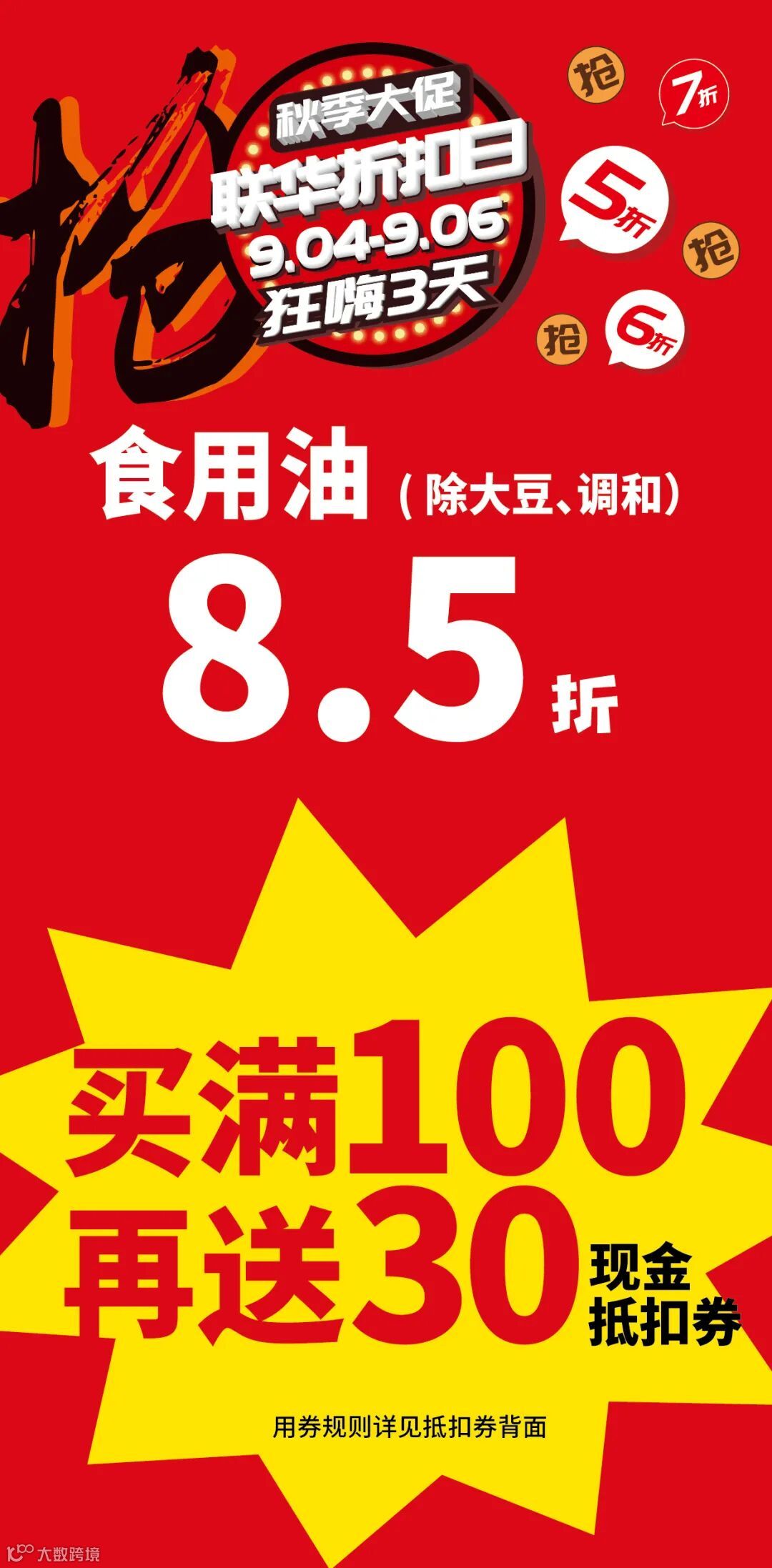 看!联华秋季大促如约而至!折扣、爆品、超级满减,只为做你的“盖世英雄”!