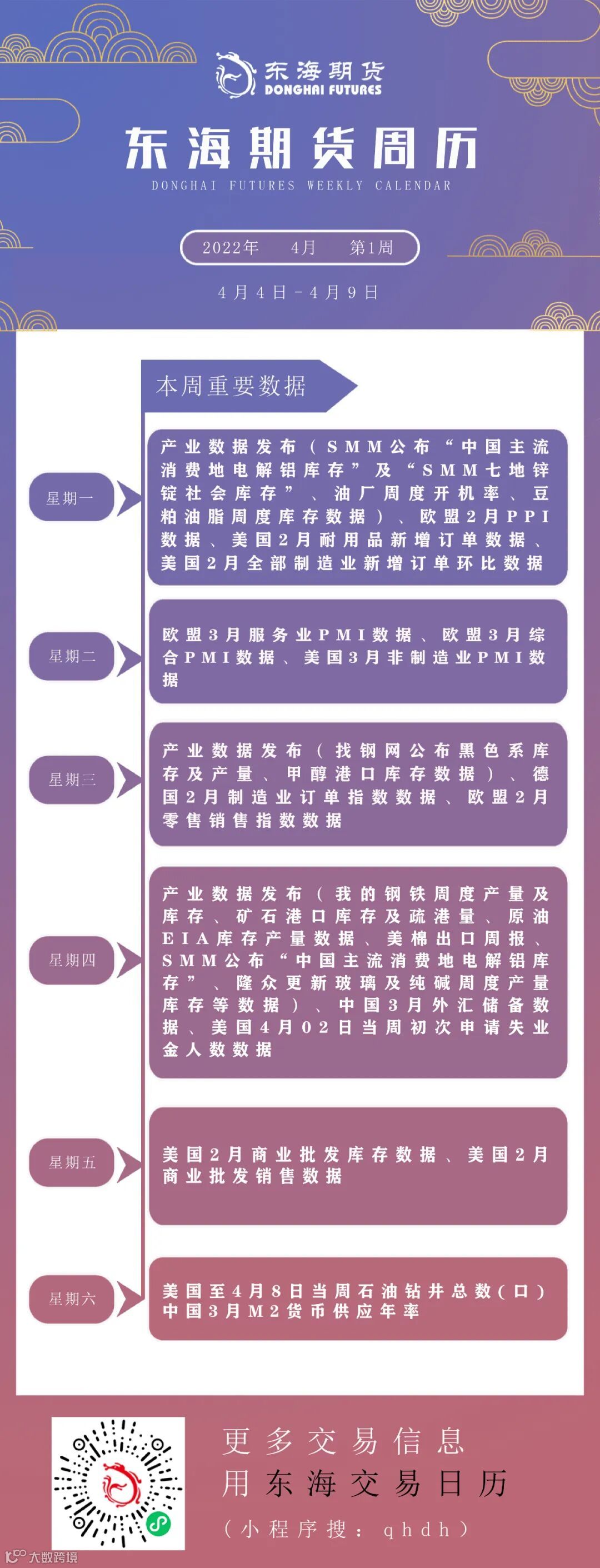 东海期市周历丨本周你需要知道的重要数据(4月4日-4月9日)