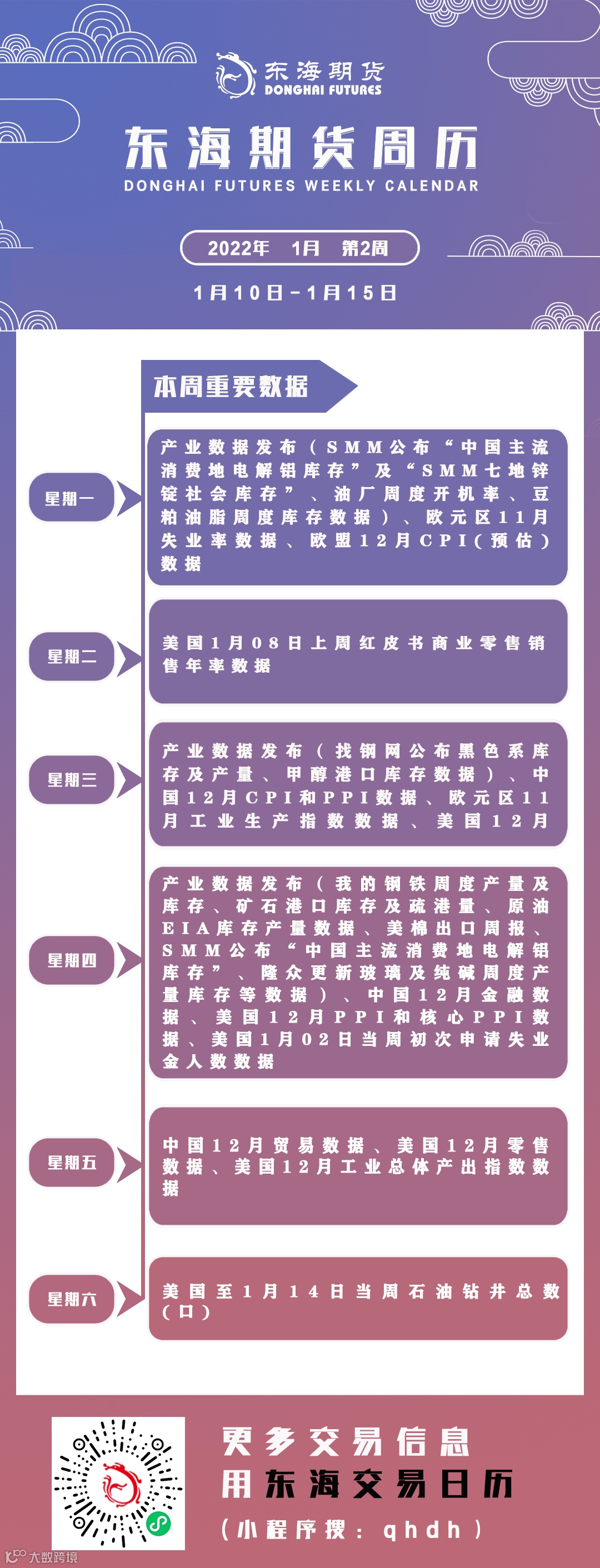 东海期市周历丨本周你需要知道的重要数据(1月10日-1月15日)