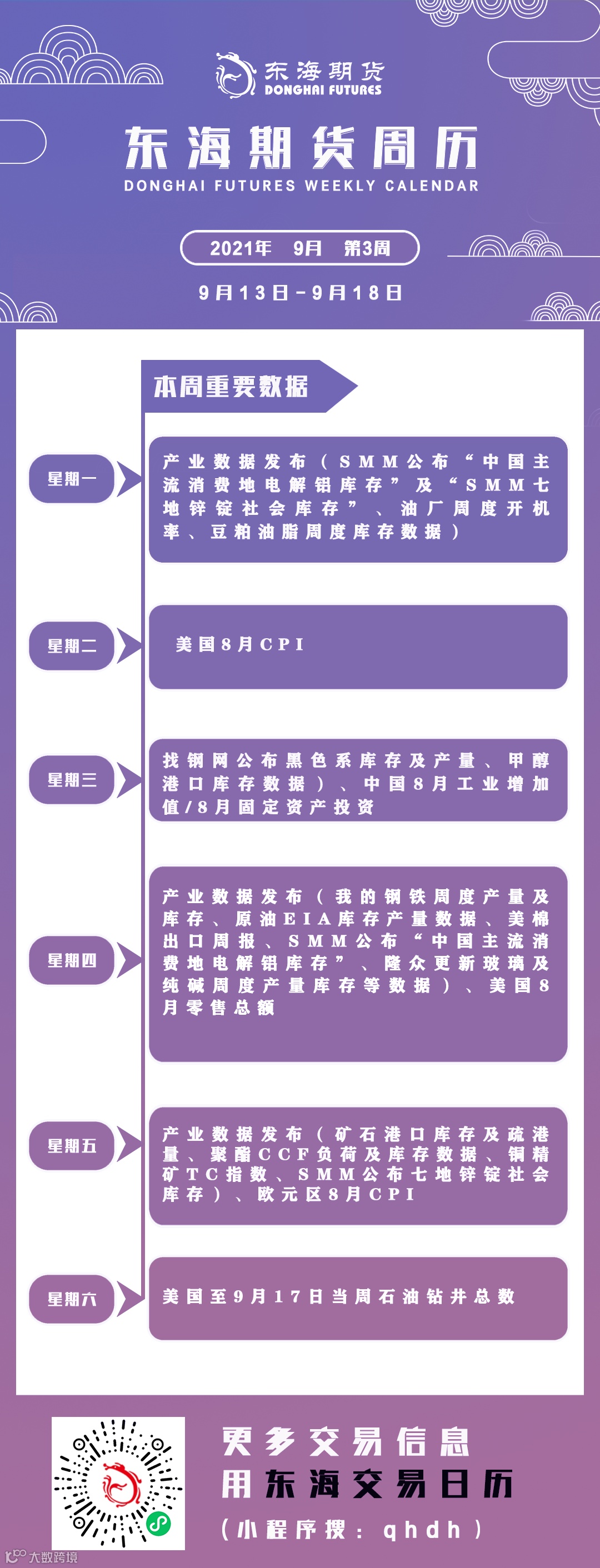 东海期市周历丨本周你需要知道的重要数据(9月13日-9月18日)
