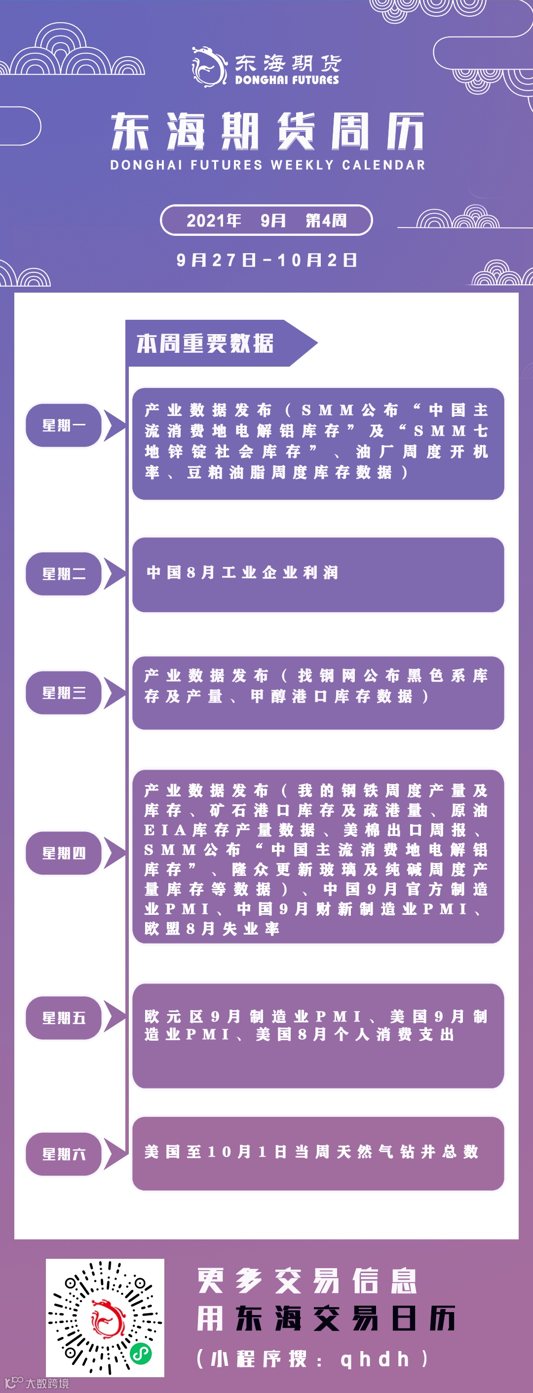 东海期市周历丨本周你需要知道的重要数据(9月27日-10月2日)