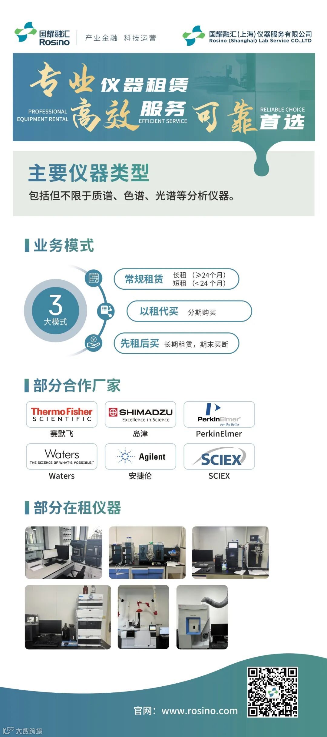 作为一家专注于全方位布局科学仪器经营性租赁业务的服务商,国耀融汇仪器一直致力于在生物制药、环境检测、高校实验室等诸多科研领域,提供化学物质分析的仪器租赁服务。背靠国有企业的强大背景,公司业务已经拓展至全国,目前在租仪器超200台,并与众多知名分析设备厂商达成深度合作,为全国科研院校、检测机构、企事业单位等用户提供经营性租赁业务,助力分析检测行业客户轻资产运营,推动行业高质量发展。