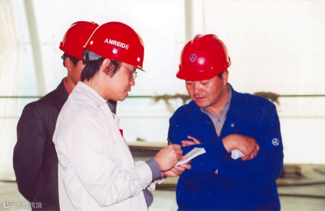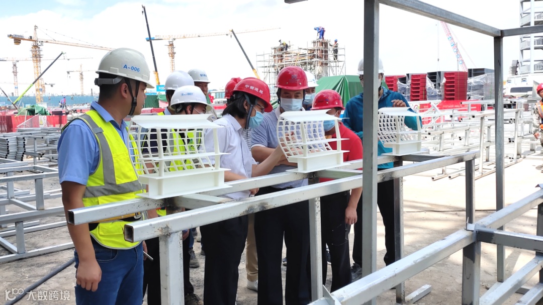 陈雄(左二)在深圳机场卫星厅工地推敲设计