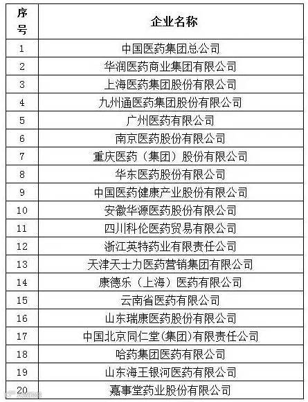 表1:2015上半年药品批发企业主营业务收入前20位排序