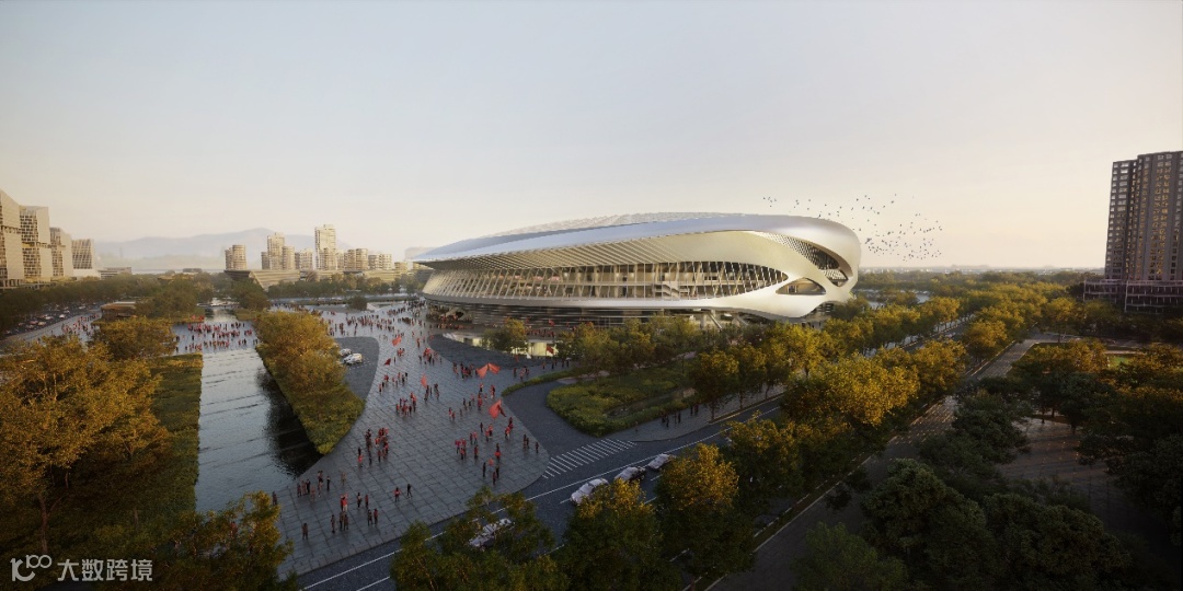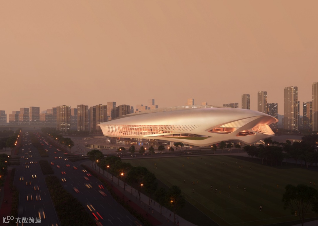 作为可以承办洲际赛事的国内最大的专业足球场之一,展现了建筑的标志性与广州的地域性。建筑曲线流畅交错,展现了赛场的速度与力量,传达出广东在百舸争流新格局下赛龙夺锦的拼搏精神。