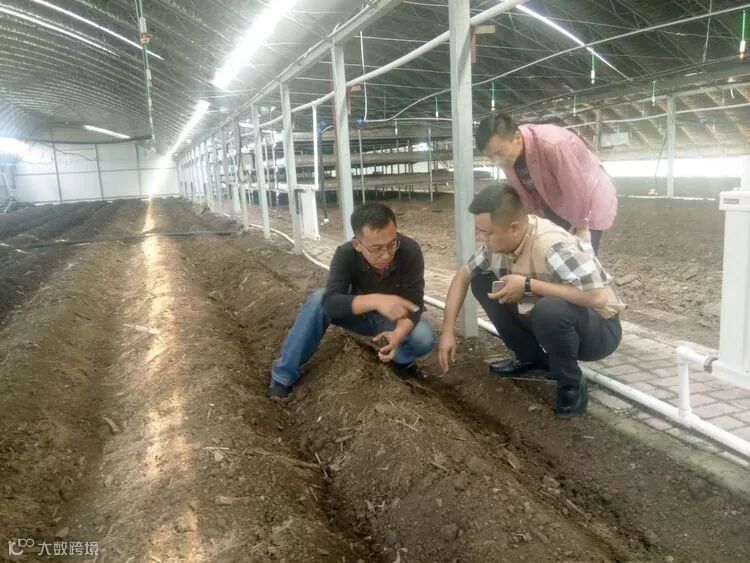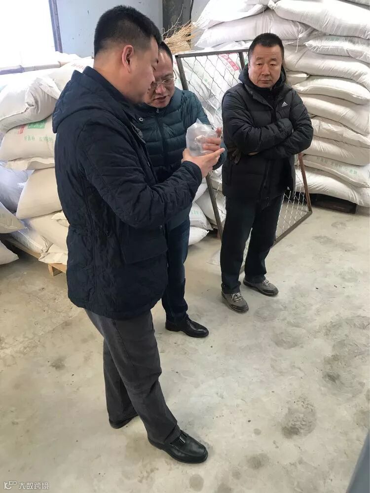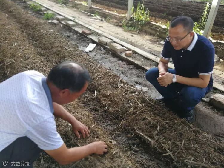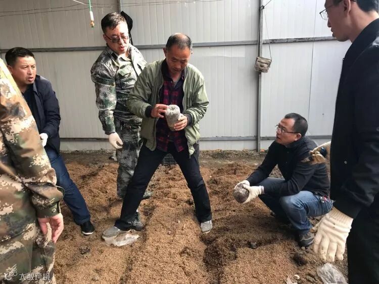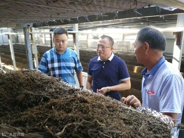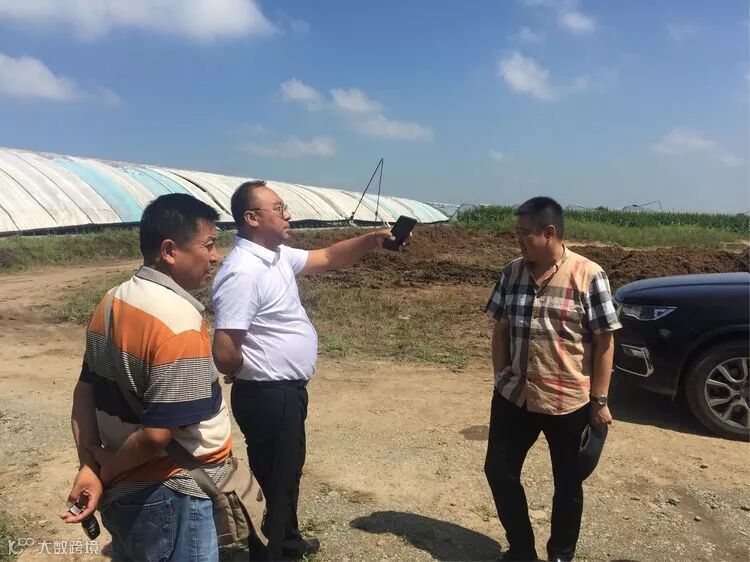 浩鑫集团董事长姜兴叶,副总经理李达到基地视察现阶段项目工作情况,并与合作单位建国农业技术员对食用菌栽培料的发酵和产出品的出口问题进行沟通。