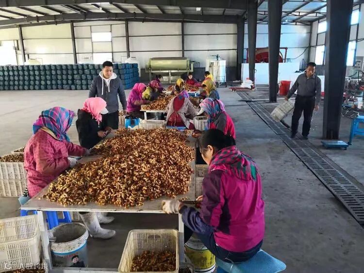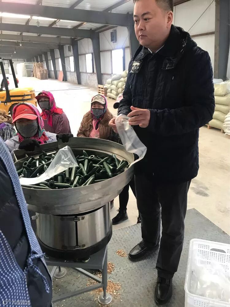 工作结束后,董事长姜兴叶、副总经理李达到蘑菇加工车间进行走访视察,工人们紧张而有序的运作着手中的工具。