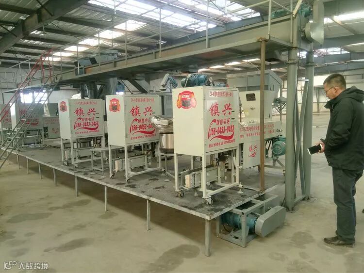基地工人正在装食用菌基料,铺蘑菇基料,菌包已经就绪。