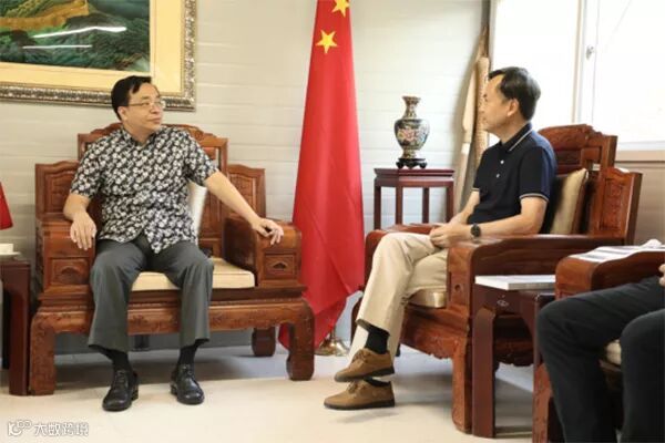 仪式前,广东省院、中建钢构代表专程前往拜访中国驻密联邦大使黄峥,调研中铁十四局集团有限公司、湖南国际工程建设有限责任公司援助密克工作组。