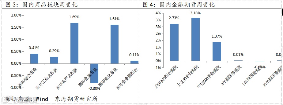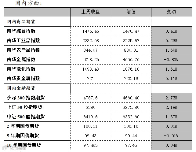上周国内商品板块大幅走低,股指期货大幅走低,国债期货涨跌互现。
