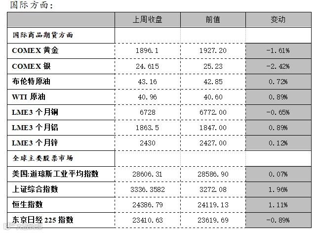 4.上周二,IMF在最新的《世界经济展望》中提出,许多经济体在走出“大封锁”后,经济复苏的步伐快于预期。相比今年6月时做出的预测,IMF小幅上调了2020年全球经济增速预期0.8个百分点至-4.4%。其中,中国预计将成为今年唯一实现经济正增长的主要经济体。