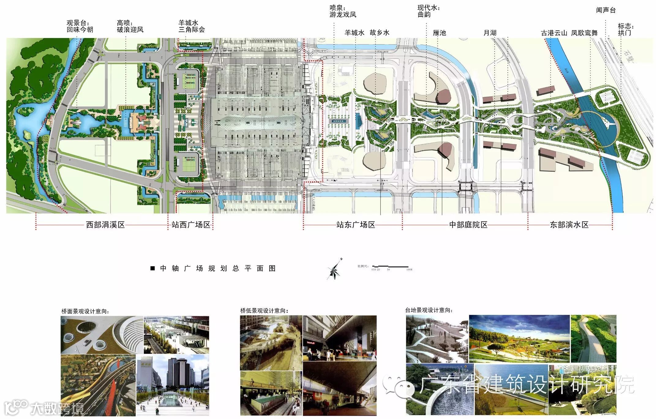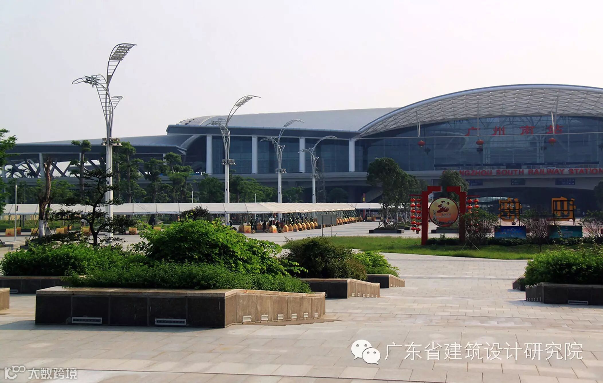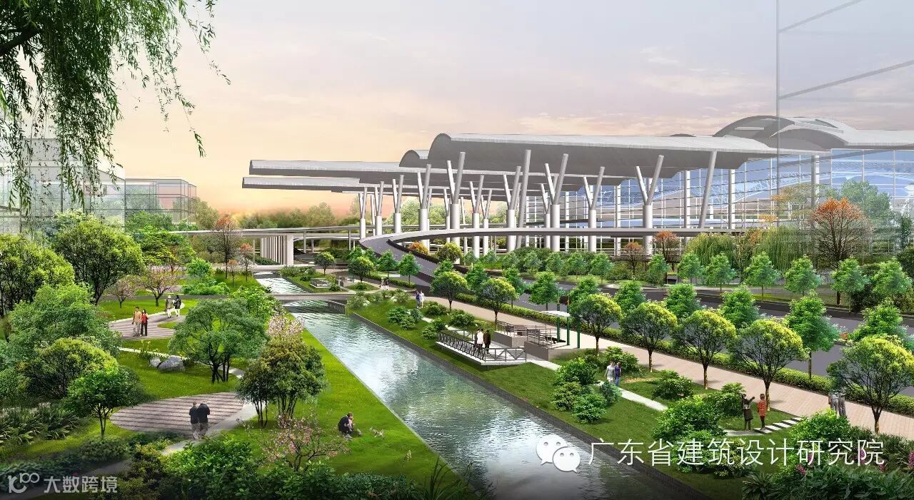 景观设计:广州铁路新客站中轴广场区用地面积约260000㎡,是项目的核心景观区。