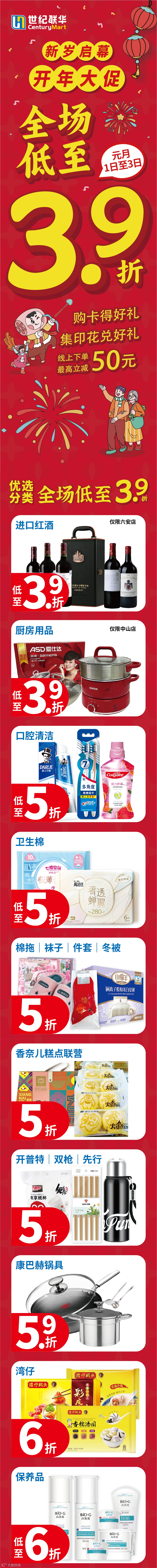 世纪联华 2026开年大促开始啦!,元月1日-3日,超级折扣、超多爆品还有购卡送好礼福利奉上,小伙伴们快来嗨购吧!
