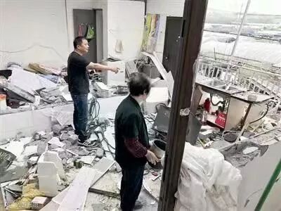 随着一声巨响,厨房里发生猛烈轰燃,三面墙壁倒塌,大块屋顶被气浪掀开,阿姨也身受重伤。
