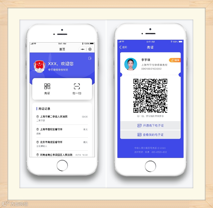 “E律通”中国律师身份核验平台让律师不必再“自证清白”。今年9月,司法部“中国律师身份核验平台”正式上线测试,中国律师行业信息化又成功迈进一小步。“E律通”是金桥参股子公司-上海同道信息技术有限公司自主研发的线下律师身份认证系统。律师只要在微信小程序中搜索“中国律师身份核验”或者扫描小程序码,通过人脸识别验证律师身份后,即可“亮证”和“扫一扫”。通过生物识别、区块链等技术确保实时、准确、高效识别律师身份。三种型号灵活匹配不同核验空间特性。“E律通”可支持“三码三证”核验: