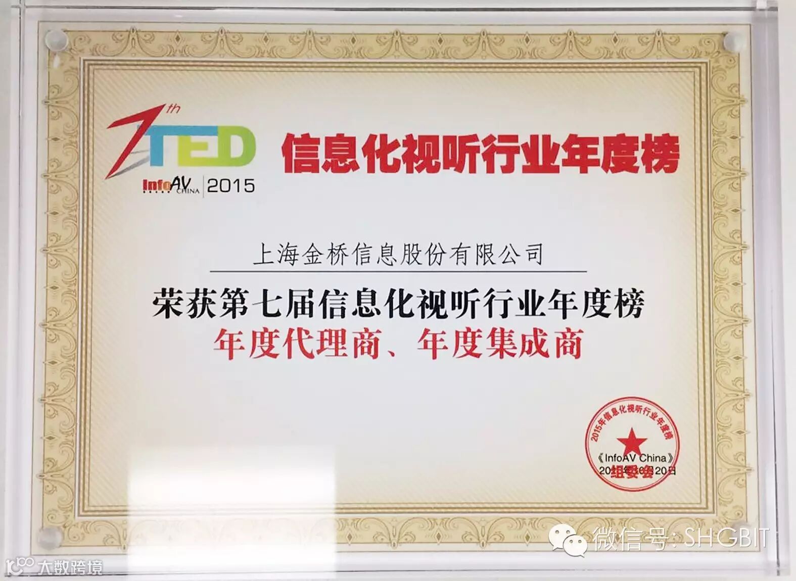 金桥信息能连续多年被评为“信息化视听行业年度代理商/集成商”,并蝉联“信息化视听行业年度解决方案”榜,都充分说明了金桥信息在全国信息化视听行业的领导地位与领先优势,金桥信息将不断开拓创新,掌握信息前沿,成为行业的领跑者和引路人。