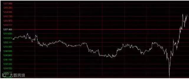 美元对欧元汇率大跌,带动黄金价格快速跳水,纽约comex黄金期货从1248美元/盎司的水平一度下跌至1237.5美元,跌幅超过10美元;随着欧元汇率走强,美元相对走弱,黄金也大幅反弹,黄金报1262.7美元,上涨0.4%。