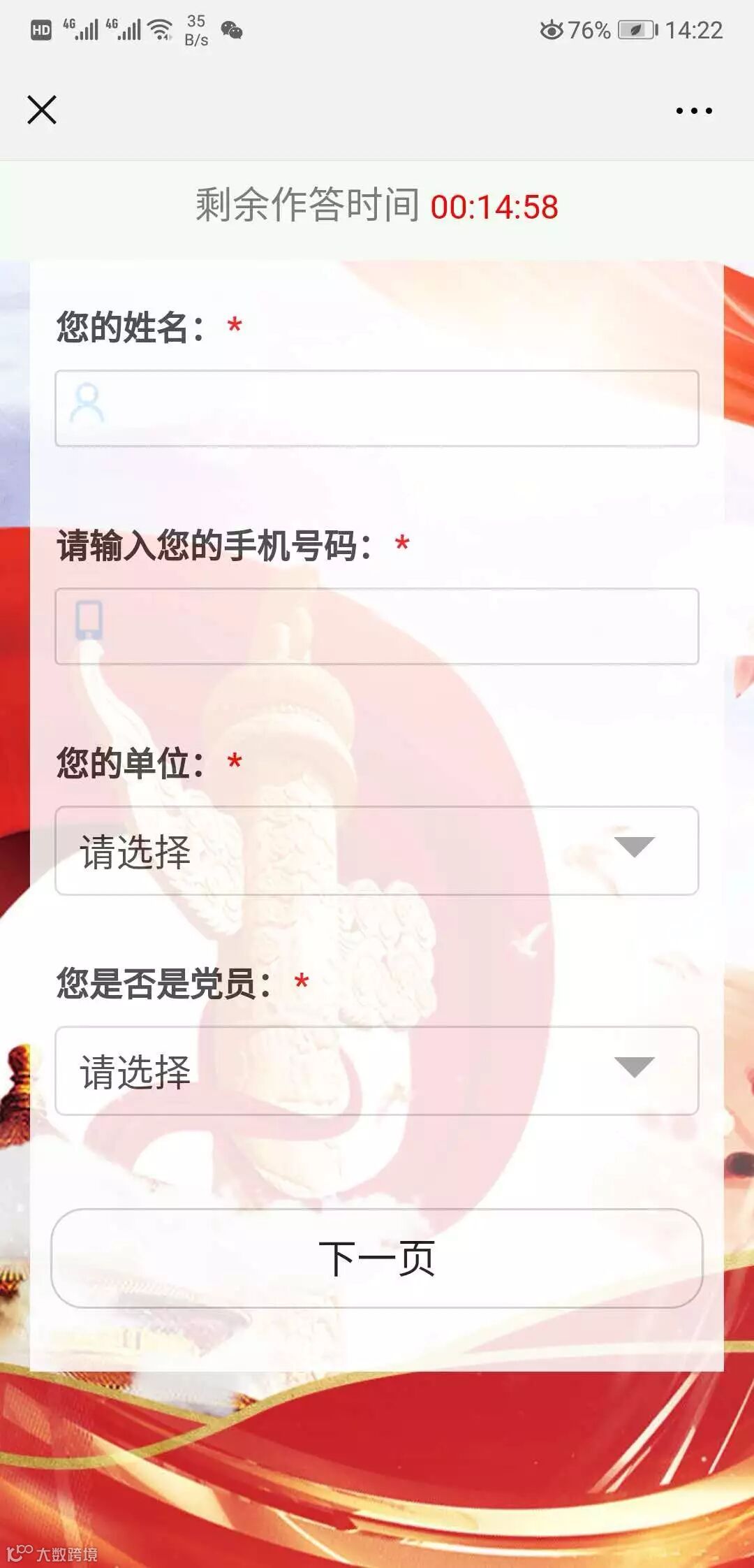 第二步:进入“不忘初心 廉洁从业”党风廉政建设知识微信答题界面